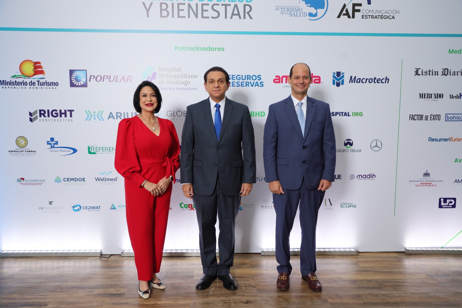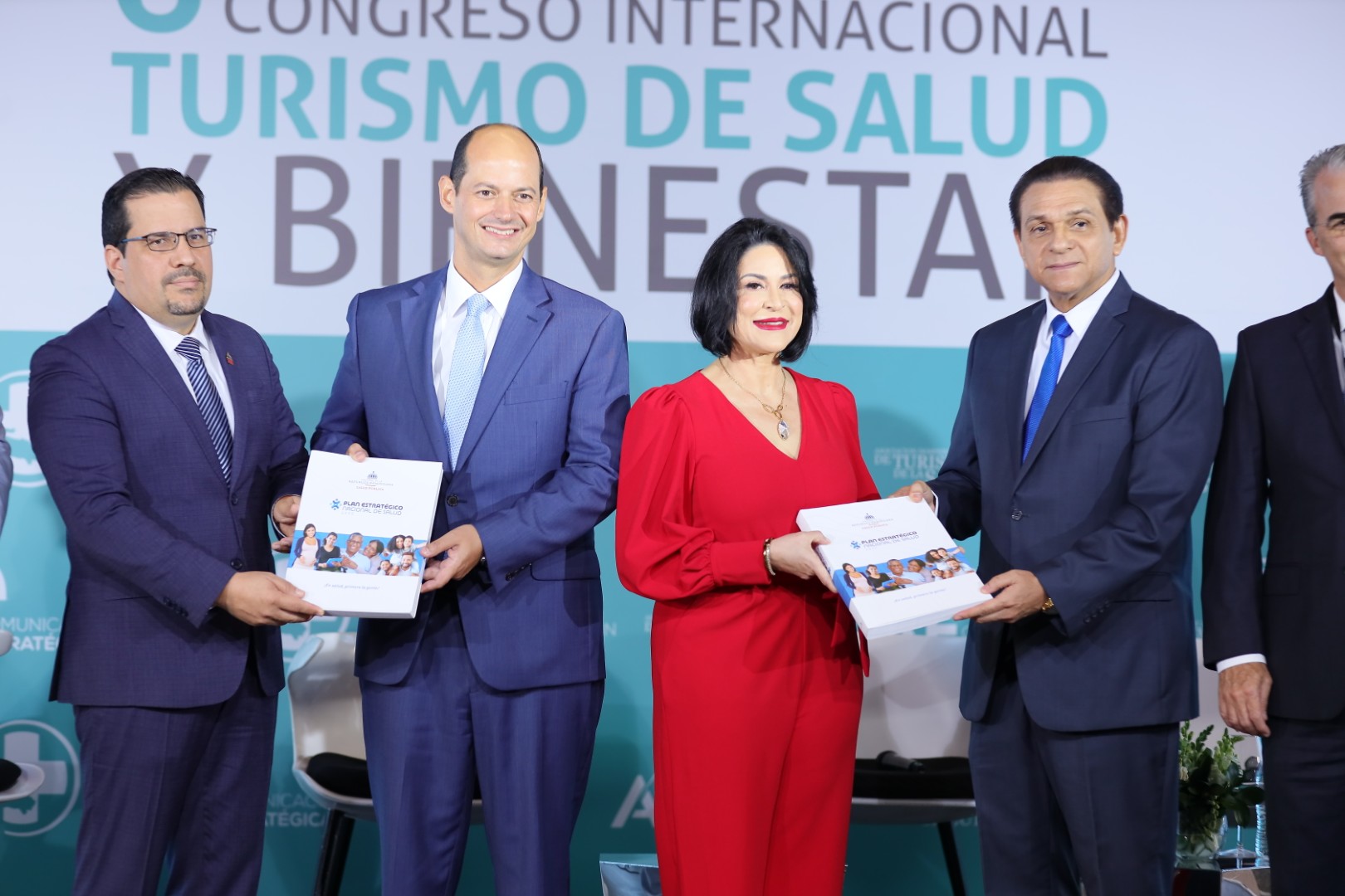 As part of this biennial event, the Minister of Health, Dr. Daniel Rivera, presented a copy of the 2030 Health Plan (PLANDES 2030) to the congress organizers, Dr. Alejandro Cambiaso, president of the Dominican Health Tourism Association (ADTS), and Amelia Reyes Mora, president of AF Comunicación Estratégica and vice president of ADTS.